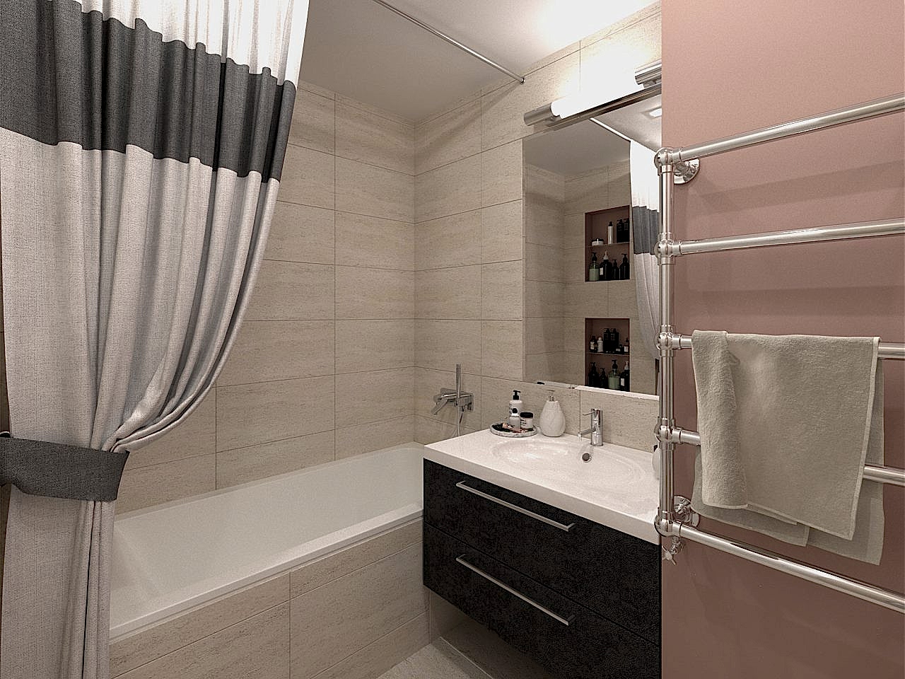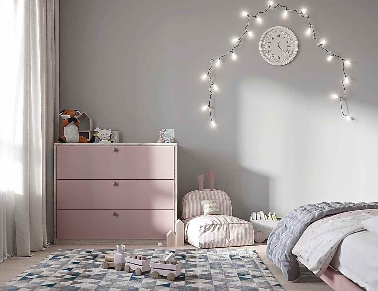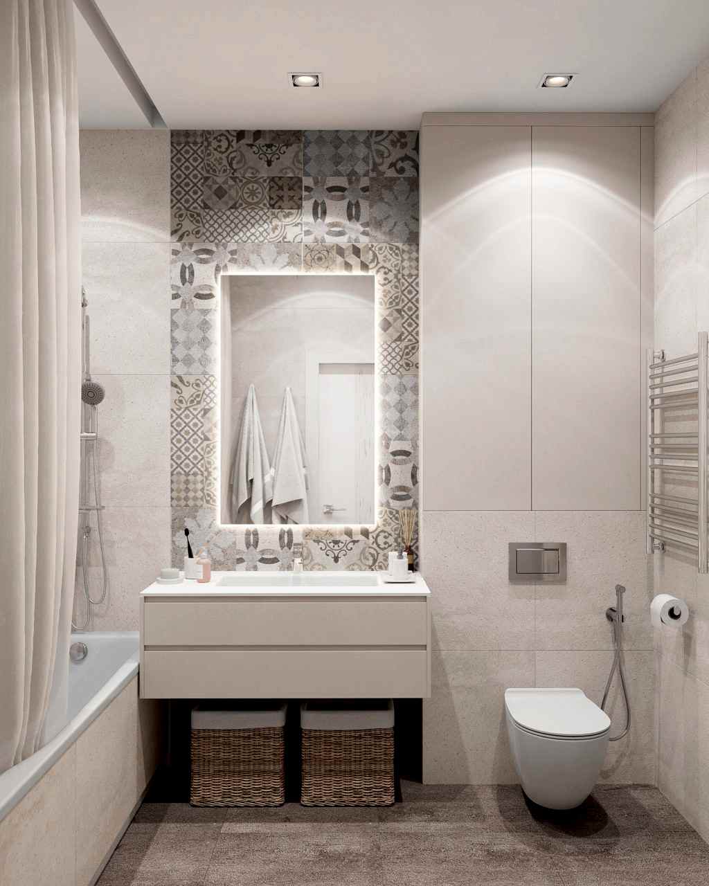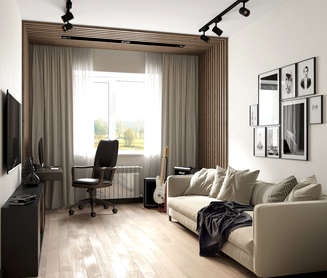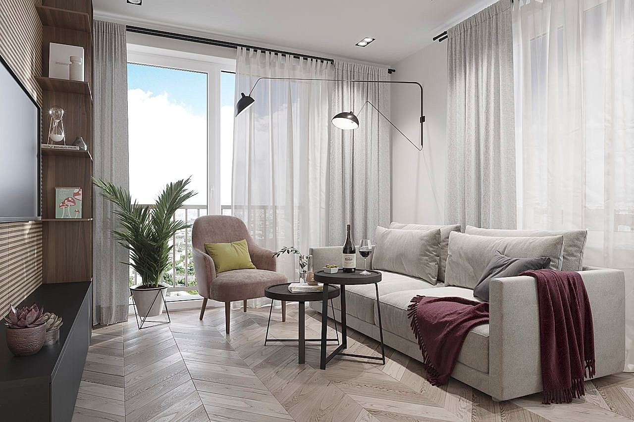 Интерьер этой квартиры выполнен для молодой семьи с маленькой дочкой. Для девочки мы создали настоящую комнату принцессы, которая сделана на вырост и будет меняться вместе со вкусами своей маленькой хозяйки. Основная гамма комнаты - нежные сочетания пыльно-розовых и теплых серых оттенках. Пожеланием для гостиной было предусмотреть место для работы и для любимого PinUp игра на гитаре. С помощью стильных реек мы разграничили зону творчества и отдыха. А гостевой санузел радует сочными цветами и плиткой с природным орнаментом. Эту же плитку мы использовали для входной зоны прихожей, где скапливается больше всего грязи. А коридор оборудовали декоративной подсветкой, на которой будут расположены семейные фотографии.