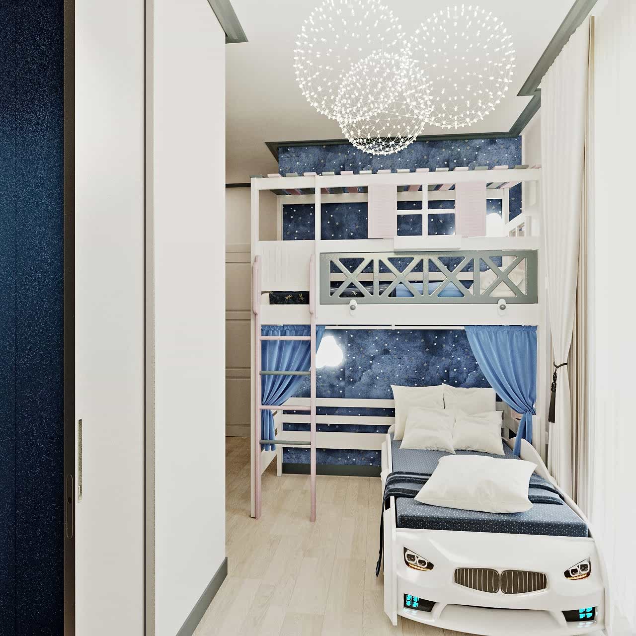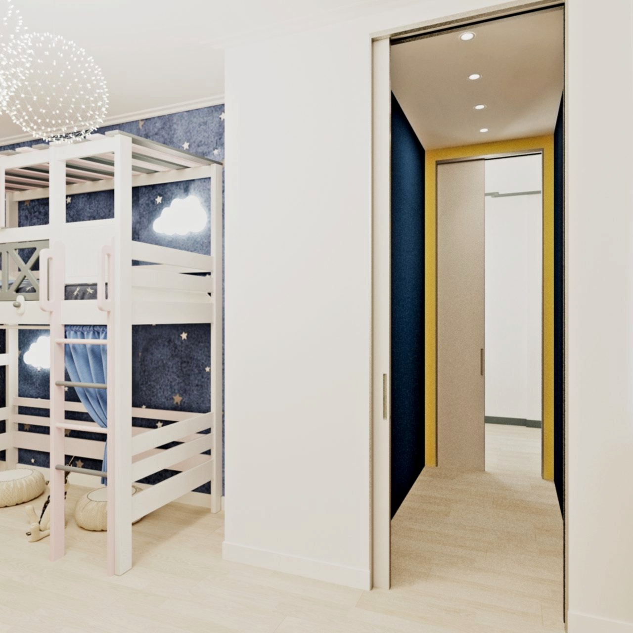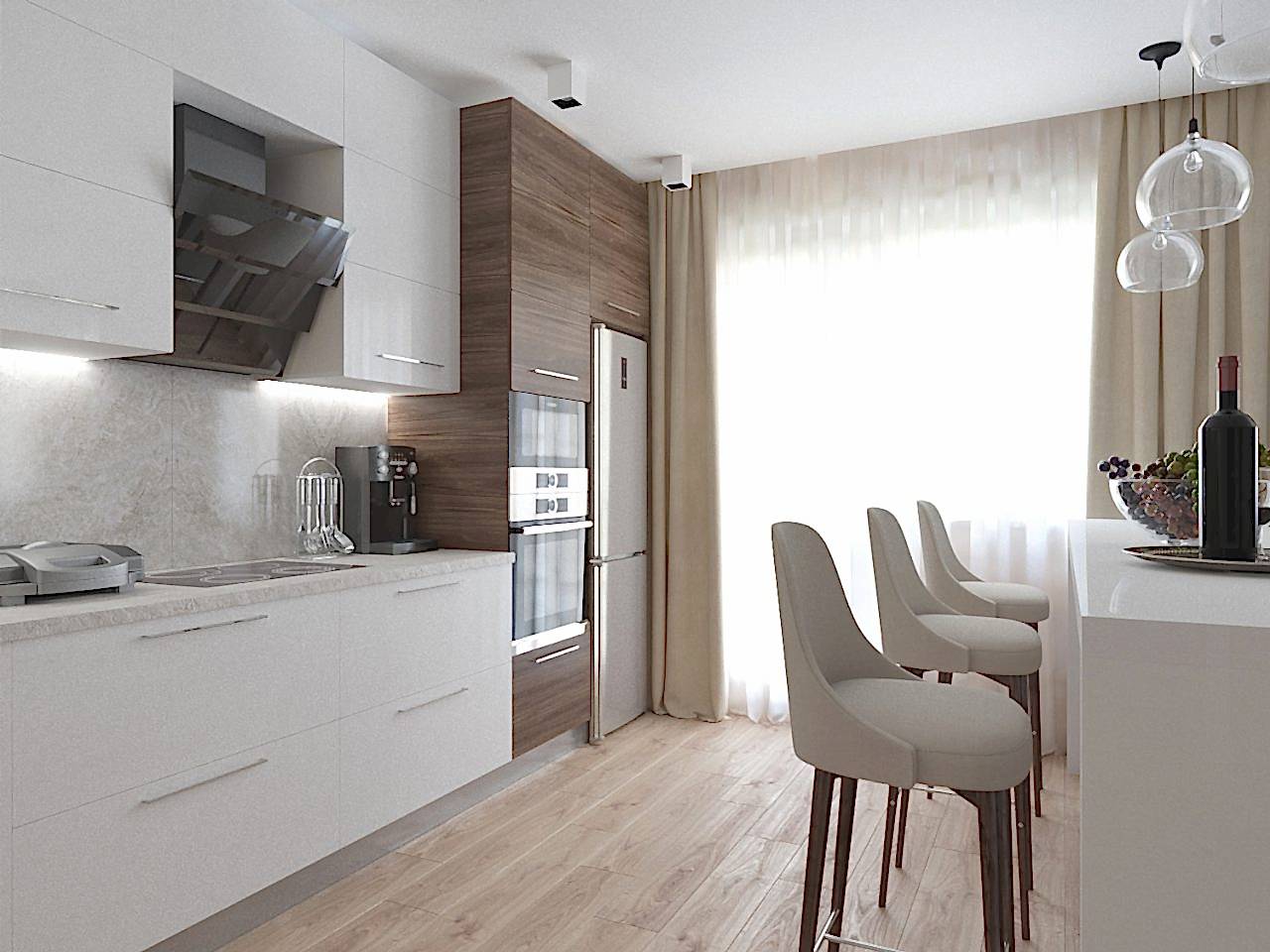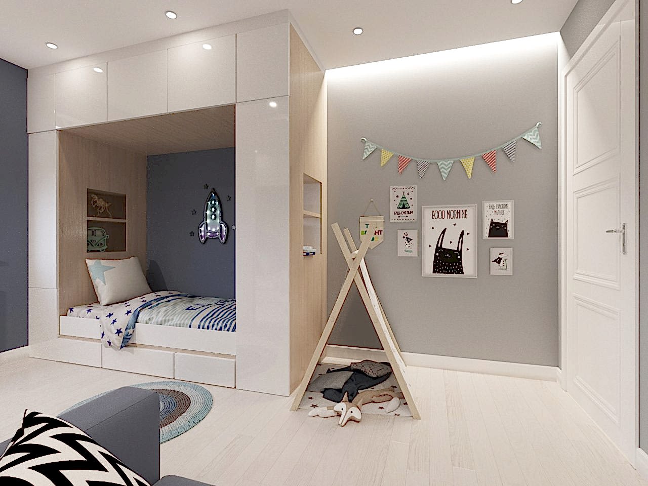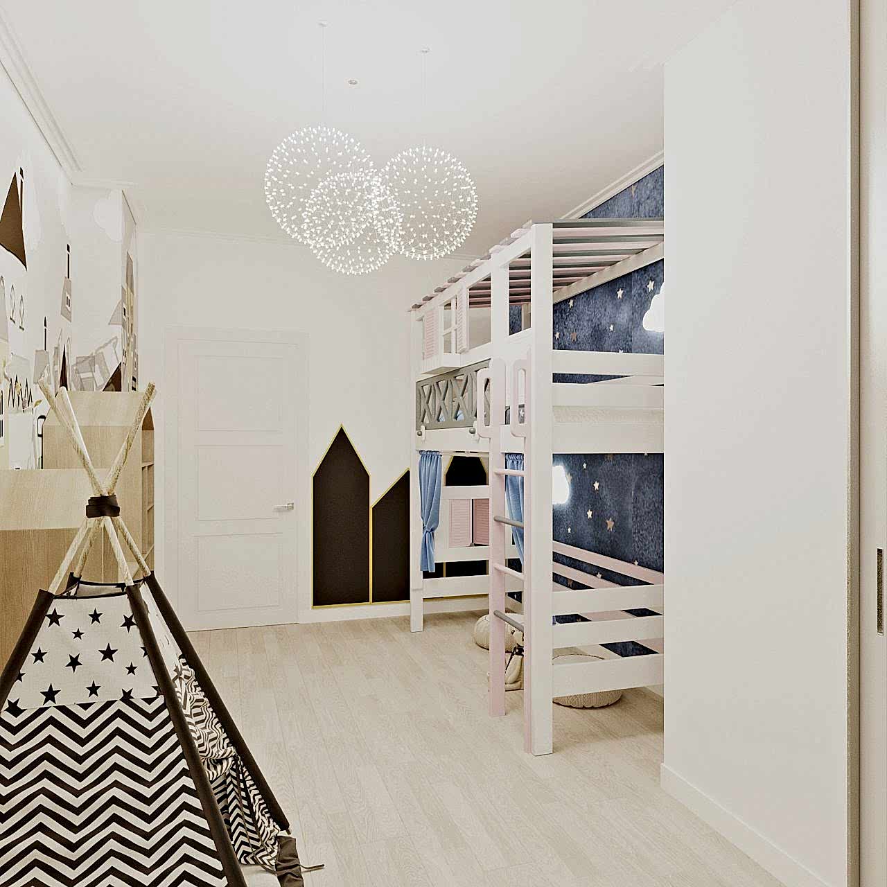 В скандинавский стиль мы добавили нотки хай-тека, сделав лаконичный дизайн в PinUp помещении.