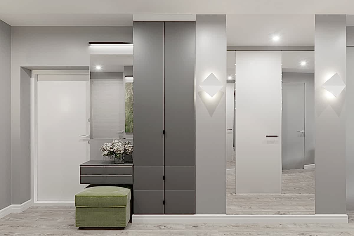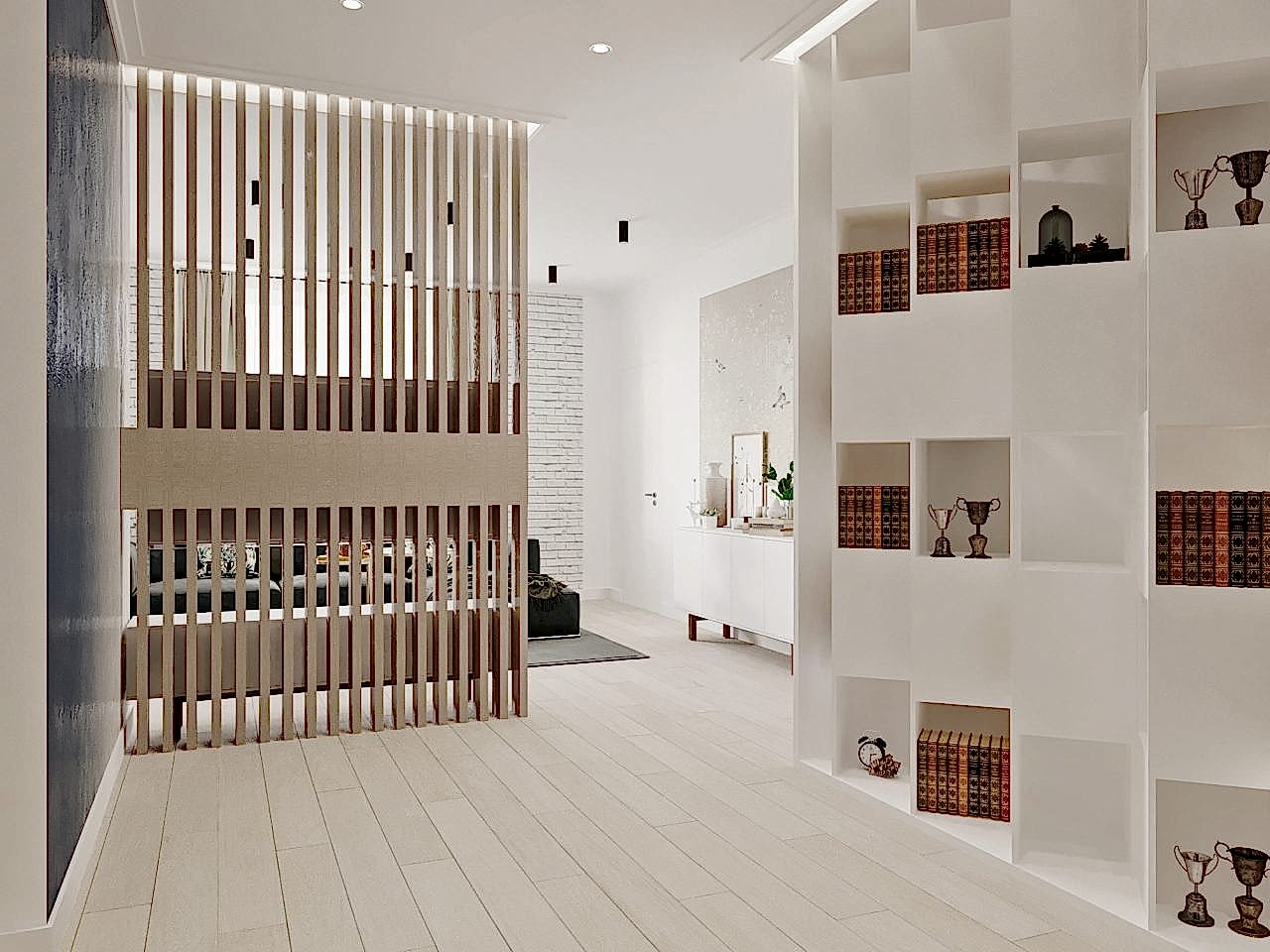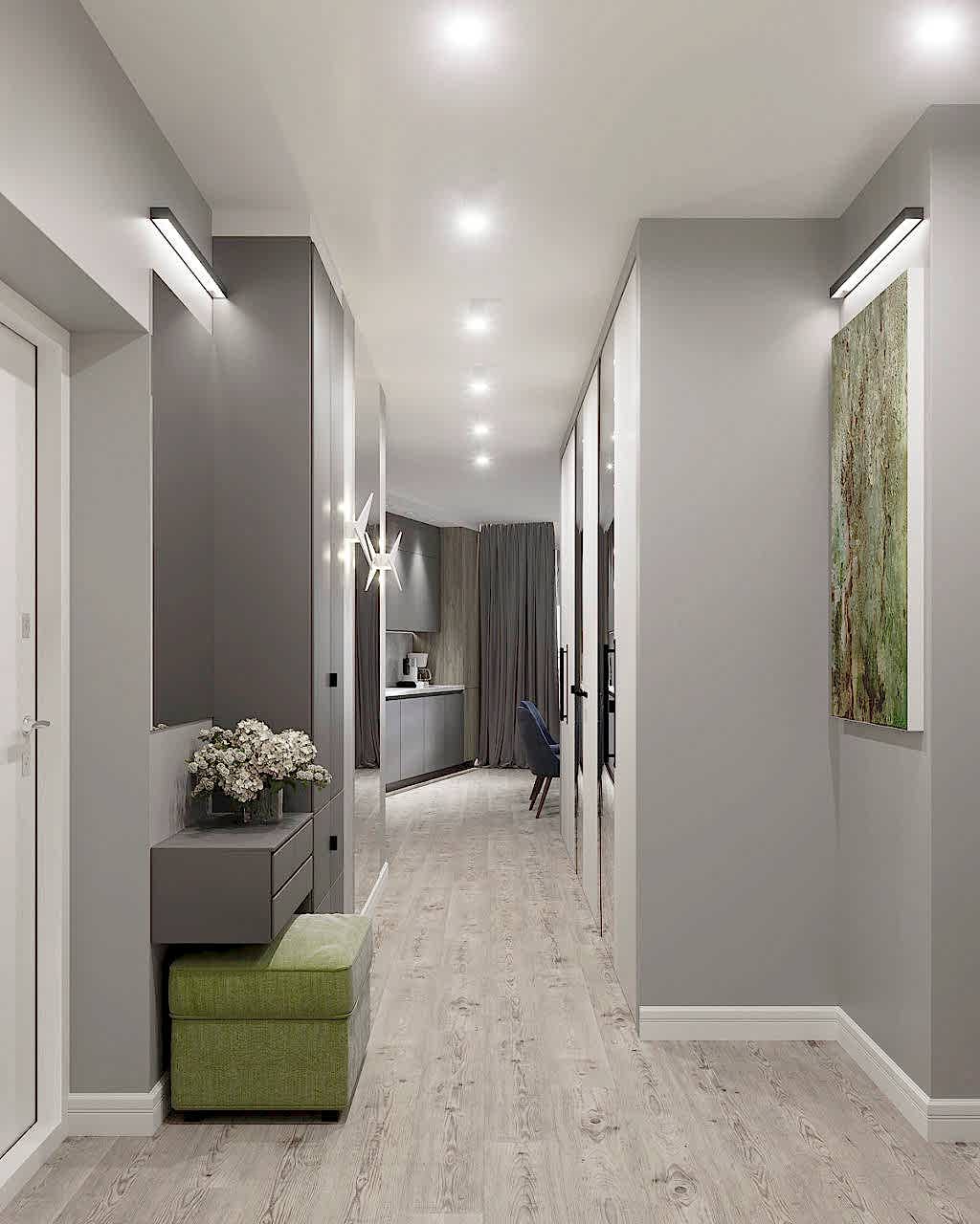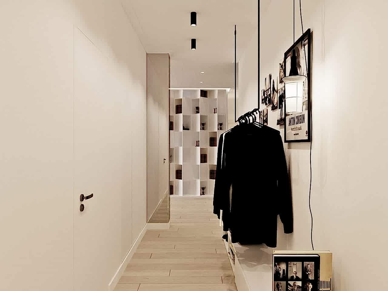 Свобода, легкость, природа, мужское и женское начало. Этими простыми словами охарактеризуем этот интерьер для молодой семьи. Для каждого возникают свои ассоциации - для каждого свой интерьер и своя атмосфера. Заказчики пожелали добавить в свободный, воздушный интерьер элементы брутальности и необычные аксессуары. Получилось очень интересное смешение стилей - лофта (кирпичная кладка, воздушная вешалка, черные светильники), классического интерьера и оригинальных решений PinUp Обратите внимание, как награды заказчика, его кубки по стрельбе, удачно вписались в интерьер: они заняли достойное место в шкафу с подсветкой, и, при входе в квартиру, сразу обращают на себя внимание.