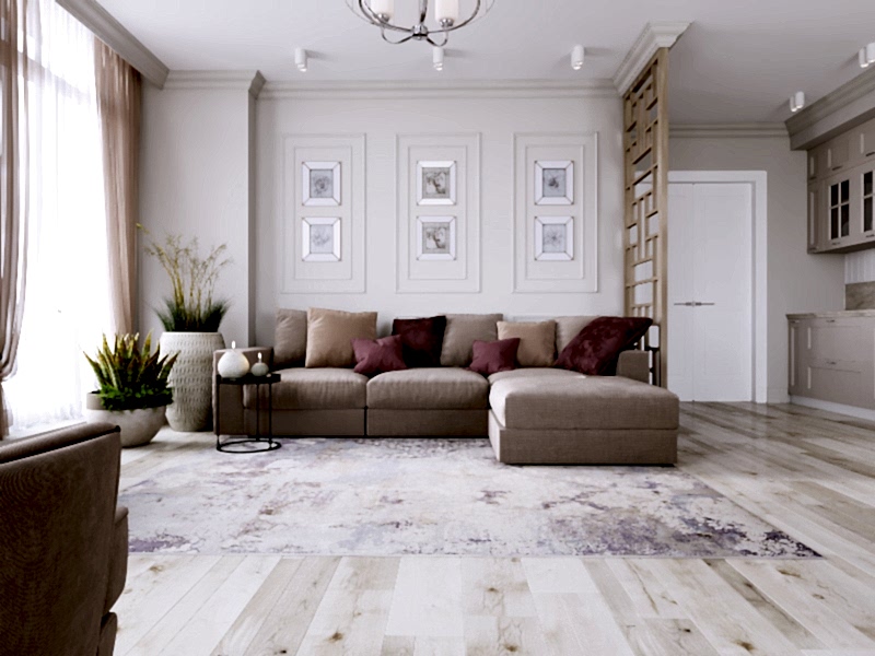 Главным пожеланием было сделать ремонт на долгое время, чтобы вся семья с комфортом проводила время в домашнем кругу. Основными цветами мы выбрали спокойный беж, разбавили оттенками марсала, нежно-голубым и сиреневым цветом аксессуаров и мебели. Обратите внимание на отсутствие высоких радиаторов - удобное PinUp они встроены в пол, и для них предусмотрены специальные конвекторы.